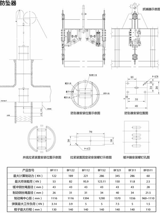 防墜器是單繩提升中的一種重要安全設(shè)備。在提升過程中,由于某種原因,提升鋼絲繩段繩或連接裝置斷裂,它能自動抓住制動繩,使罐籠平穩(wěn)停住,不致墜入井底,從而保證人員的安全和提升設(shè)備不致?lián)p壞。